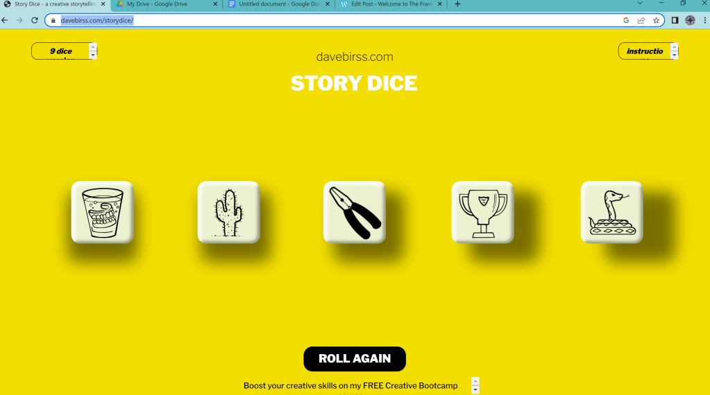 I have a collection of Rory’s Story Cubes (On Amazon, here: https://amzn.to/3qQmRnU) which has a lot of add on packs you can add to it, which can add even more fun and motivation to students’ writing .There are sets with these themes: Harry Potter, a Batman, Star Wars, Dr. Who, Totoro, as well as not branded sets like actions, emotions, voyages, fantasy, heroes, mystery…seriously, the possibilities are endless! These are fun for everyone, especially when you mix all the cubes together! Wait until The Doctor has to get the Golden Snitch before he turns into a frog! There’s even an app you can get and add these packs!